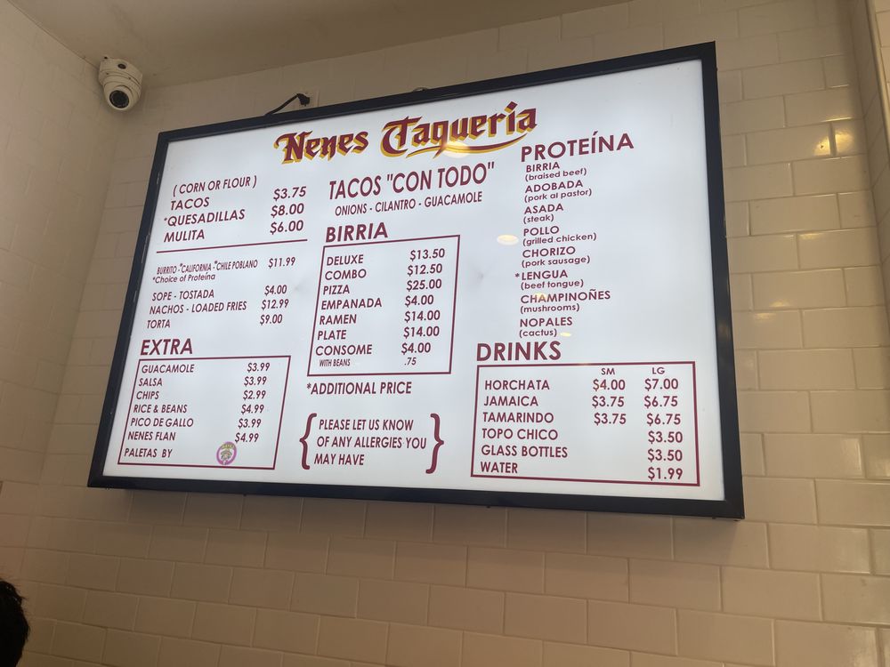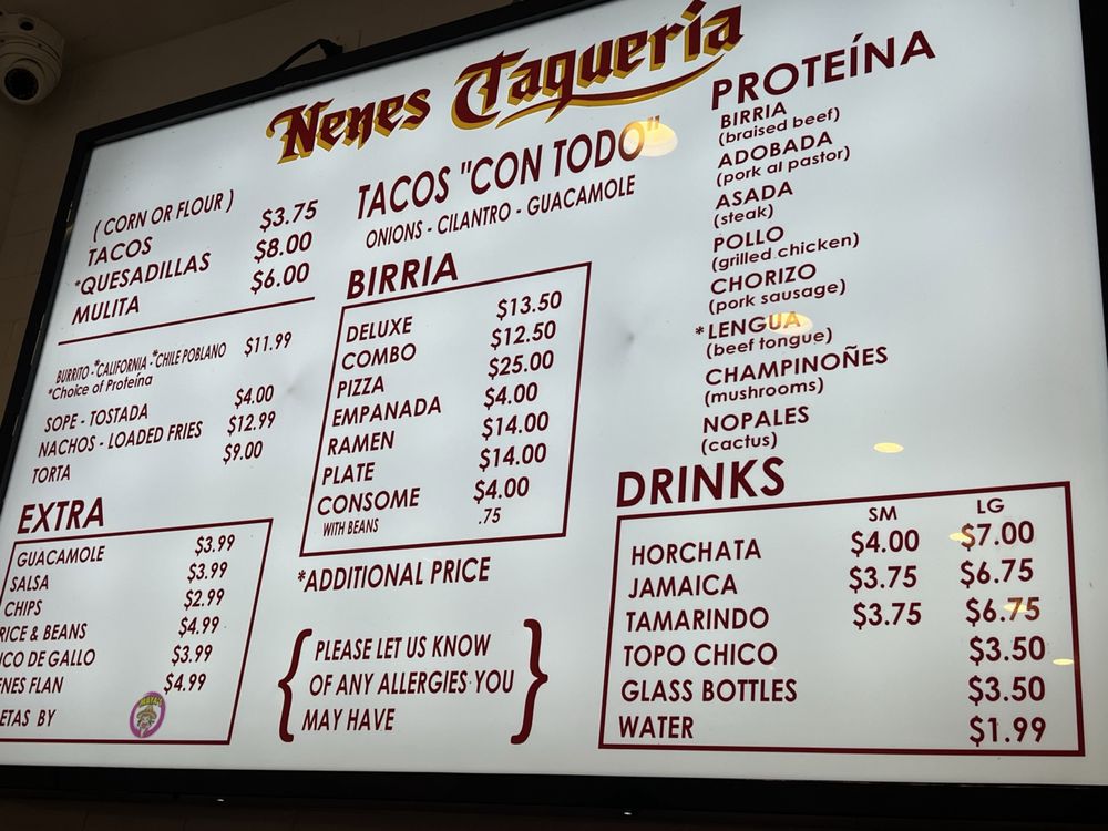 Nenes Taqueria Menu (2025 Update)